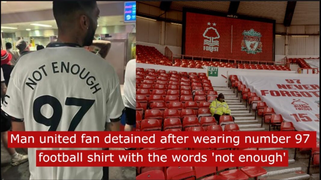 Երկրորդ միջադեպը վերաբերում է «Յունայթեդի» 97 համարի մարզաշապիկով և «բավարար չէ» կարգախոսով երկրպագուի ձերբակալությանը, հայտնում է The Guardian-ը: