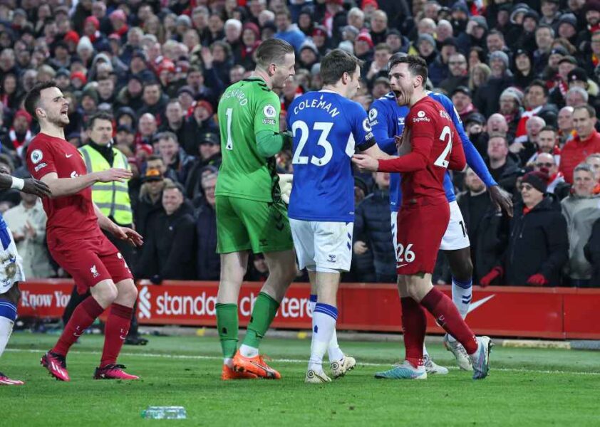 Այդ կոնֆլիկտը սկսվեց «Լիվերպուլի» պաշտպան Էնդրյու Ռոբերտսոնի և «Էվերթոնի» դարպասապահ Ջորդան Փիքֆորդի միջև տարաձայնությունով, ով դեղին քարտ ստացավ մրցավար Սայմոն Հուպերից։